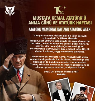 GAÜ REKTÖRÜ PROF. DR. SERDAR YURTSEVER’İN ÜNİVERSİTE ADINA; “10 KASIM ATATÜRK'Ü ANMA GÜNÜ” YAZILI MESAJI