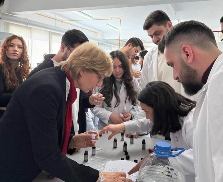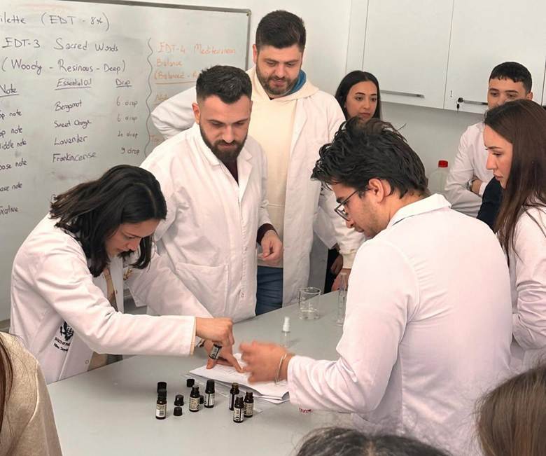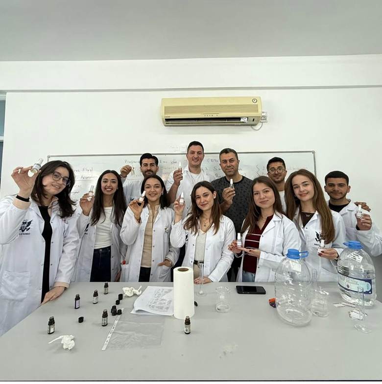 The GAU Pharmacy Club successfully completed its “Eau de Toilette” Workshop under the guidance of Prof. Dr. Ömür Demirezer, where students gained hands-on experience in fragrance formulation by learning about scent profiles, blending principles, and EDT composition, and creating their own personalized perfumes from start to finish. This workshop contributes to the UN Sustainable Development Goals by supporting SDG 4 (Quality Education) through practical, skill-based learning, SDG 9 (Industry, Innovation and Infrastructure) by fostering innovation and connecting students with real-world cosmetic and pharmaceutical production practices, and SDG 12 (Responsible Consumption and Production) by promoting awareness of thoughtful ingredient selection and responsible product development.