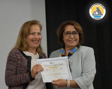 Dr Ceyhun Birinci ve Kıbrıs Türk Diyabet Derneği Başkanı Handan Bilgehan Mert’e teşekkür belgeleri GAÜ Eğitim Öğretim ve Araştırmada Mükemmelliyet Mmerkezi Başkanı Prof.Dr. Terin Adalı ve Hemşirelik Yüksekokulu Bölüm Başkanı Yrd. Doç. Dr. Emine Güllüelli tarafından taktim edildi.