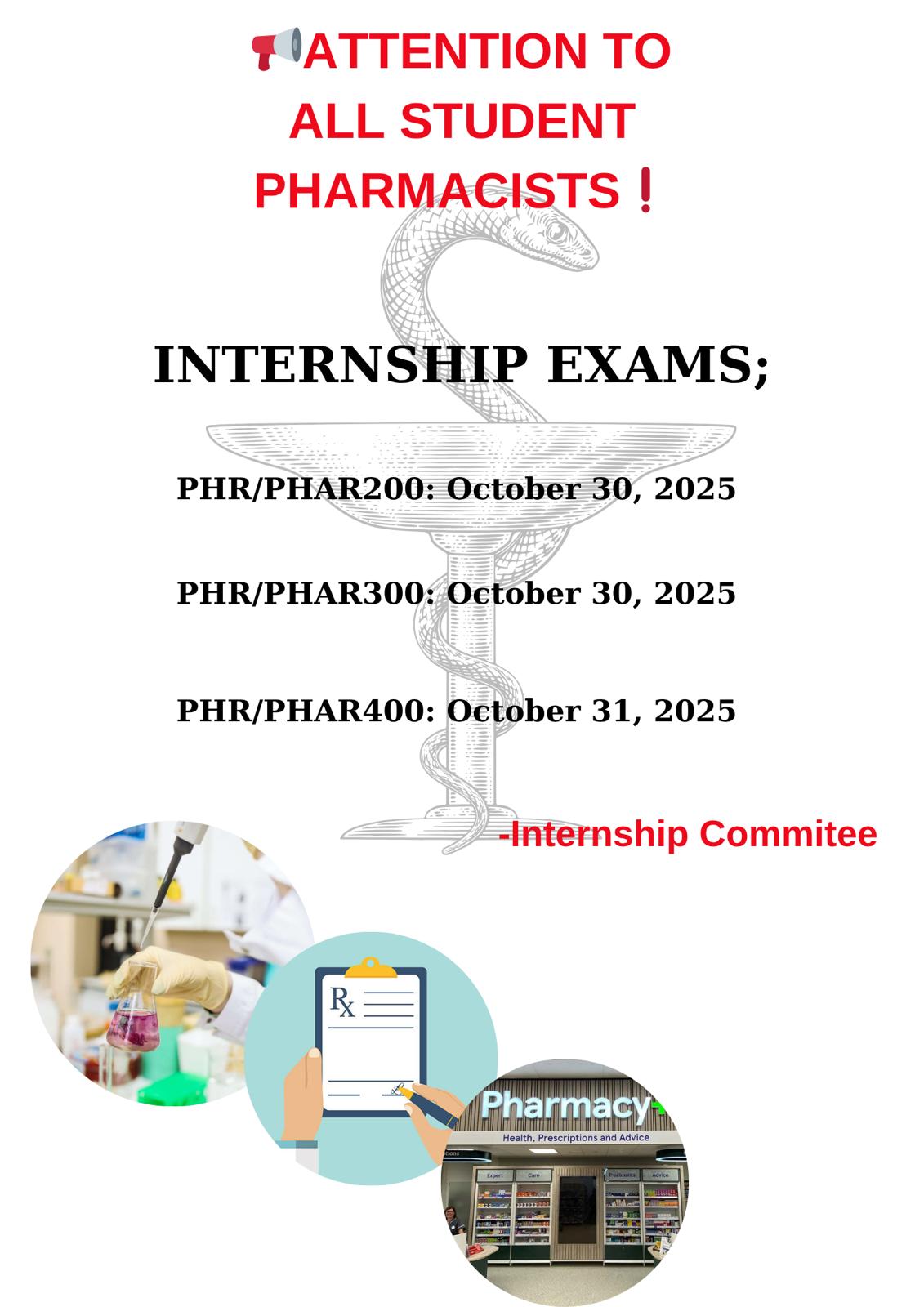 GAU Faculty of Pharmacy PHR 200, 300, and 400 Trainings Exam time