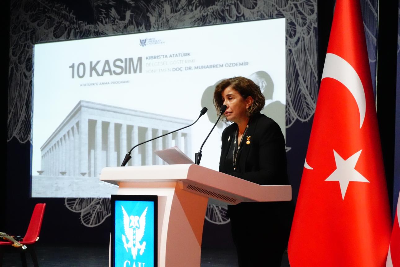 GAÜ Eğitim ve İletişim fakültelerinin, 10 Kasım Anma Günü ve Atatürk Haftası kapsamında düzenledikleri ve Uluslararası Spectrum Kongre Merkezi'ndeki düzenlenen salon etkinliğine; İlk törende olduğu gibi GAÜ Rektörü Prof. Dr. Serdar Yurtsever başta olmak üzere, rektör yardımcıları, fakülte- yüksek okulların dekan ve müdürleri, GAÜ Sağlık, Kültür ve Spor Dairesi Başkanı Türkay Akpınar, akademik ve idari kadro ile birlikte öğrenciler katıldı. Etkinlikte; GAÜ Eğitim Fakültesi öğrencilerinin Atatürk temalı şiir ve seslenişleri, müzik dinletisi ile İletişim Fakültesi Öğretim Üyesi Doç. Dr. Muharrem Özdemir tarafından yapım ve yönetmenliği yapılmış; "Atatürk Ve Kıbrıs" adlı kısa belgeselin gösterimi de gerçekleşti.
