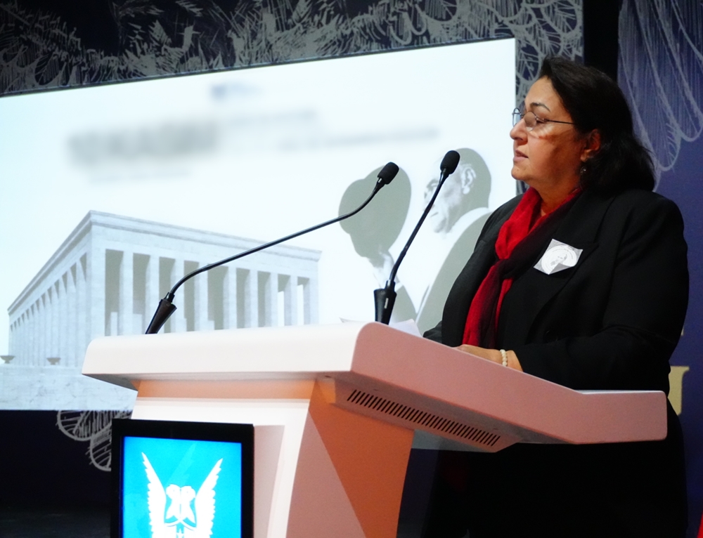 Saygı duruşu ve İstiklal Marşı'nın okunması sonrası ilk sözü alan GAÜ Eğitim Fakültesi Türkçe Öğretmenliği Bölüm Başkanı Doç. Dr. Elza Alişova Demirdağ, Atatürk’ün tüm ‘Türk Coğrafyası’ üzerindeki