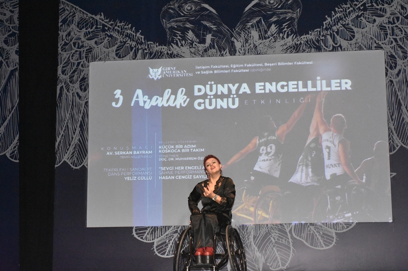 GAÜ Spectrum Uluslararası Kongre Merkezi’nde geçtiğimiz günlerde yapılan etkinlikte, ‘Tekerlekli Sandalye Dans Performansı’ (Yeliz Güllü), ‘Sevgi Her Engeli Aşar’ Sahne Performansı (Hasan Cengiz Sayılı) ile ‘Küçük Bir Adım, Koskoca Bir Takım’ belgeseli de (Yön.Doç.Dr. Muharrem Özdemir) katılımcılara sunuldu. Programda, TBMM Milletvekili Serkan Bayram’ın da görüntülü mesajı da ayrıca paylaşıldı. Etkinlik ile Girne Amerikan Üniversitesi’nin de; Ülkemizdeki engelli bireylerin, ‘mümkün olabilecek’ en mutlu ve rahat bir hayat yaşayabileceği statü ile topluma tam ve etkin katılımının sağlandığı, kapsayıcı ve engellerin aşıldığı konuma vereceği destek, bir kez daha seslendirildi.