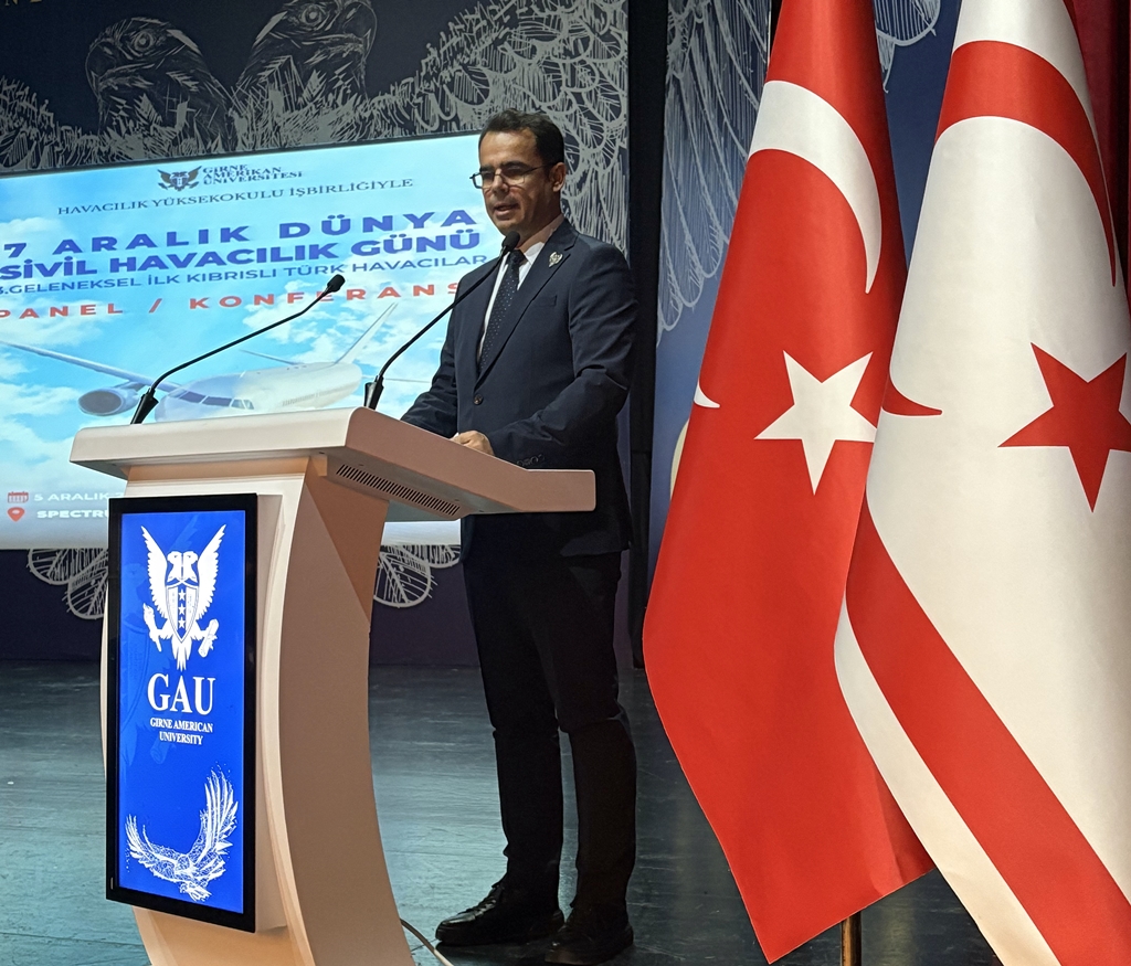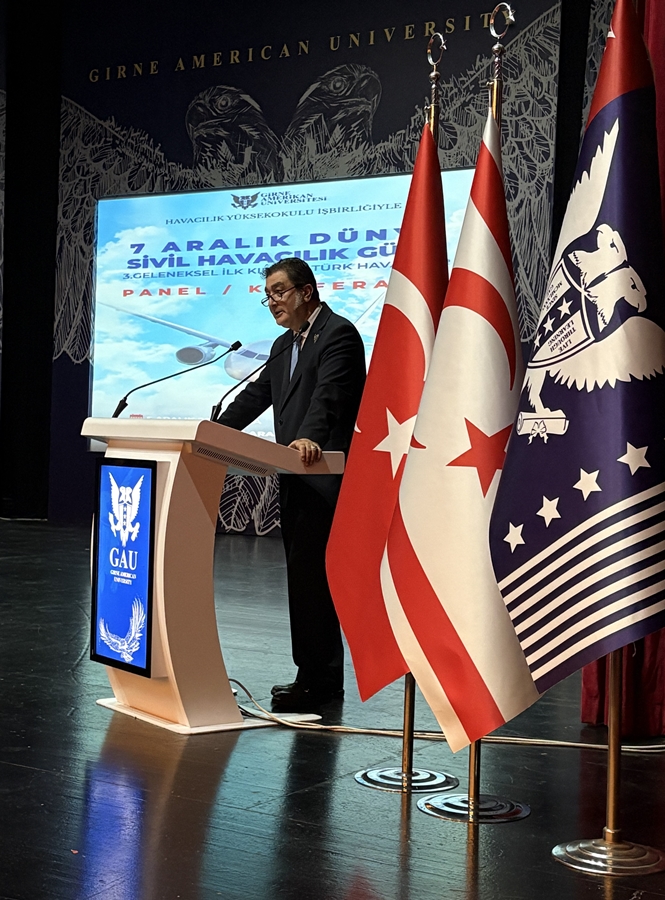GAÜ Havacılık Yüksek Okulu Müdürü Doç. Dr. Salim Kurnaz açılış konuşmasında şu ifadeler ile ‘7 Aralık Sivil Havacılık Günü’nü kutladı; “İnsanlığı birbirine bağlayan ulaşım sistemini ve emniyetli, sürdürülebilir havacılığın önemini yeniden hatırlatan bu anlamlı günde; GAÜ olarak, havacılık eğitiminin yalnızca teorik bilgi ile sınırlı kalmayacağını çok iyi biliyoruz. Bu nedenle; Nitelikli ve deneyimli akademik kadro, sektörel entegrasyonu yüksek uyumlu eğitim modelleri, öğrencilerimizin gelişimini destekleyen laboratuvar çalışmalarını, eğitim süreçlerimizin merkezine yerleştiriyoruz. Sürdürülebilir havacılık modellerine katkı sağlamak, karbon ayak izini azaltmak ve çevreci çözümleri desteklemek, üniversite olarak benimsediğimiz öncelikler arasındadır. Ulusal ve uluslararası kadrolarda çalışan bir çok mezunumuz bulunduğunu da gururla paylaşmak isterim. Hem akademisyenlerimizin, hem de mezun öğrencilerimizin ulaştığı bu başarının; Şimdiki öğrencilerimize yol gösterici olacağına inancımız tamdır. Öğrencilerimizden beklentimiz; disiplinli bir yaşam biçimini benimseyerek, emniyet kültürünü her şeyin üzerinde tutmaları, sürekli öğrenmeyi ilke edinmeleri ve etik kurallara bağlılıktan ödün vermemeleridir. Geçmişteki öncülerin cesareti ile gençlerimizi, geleceğin vizyonunda buluşturmak için ‘Kıbrıs'ta İlk Türk Havacılar’ temasını özellikle tercih ettik. Çünkü, havacılık yalnızca teknolojiye bağlı bir alan değildir, aynı zamanda karakterin en güzel örneklerini içinde barındırabilmelidir.”