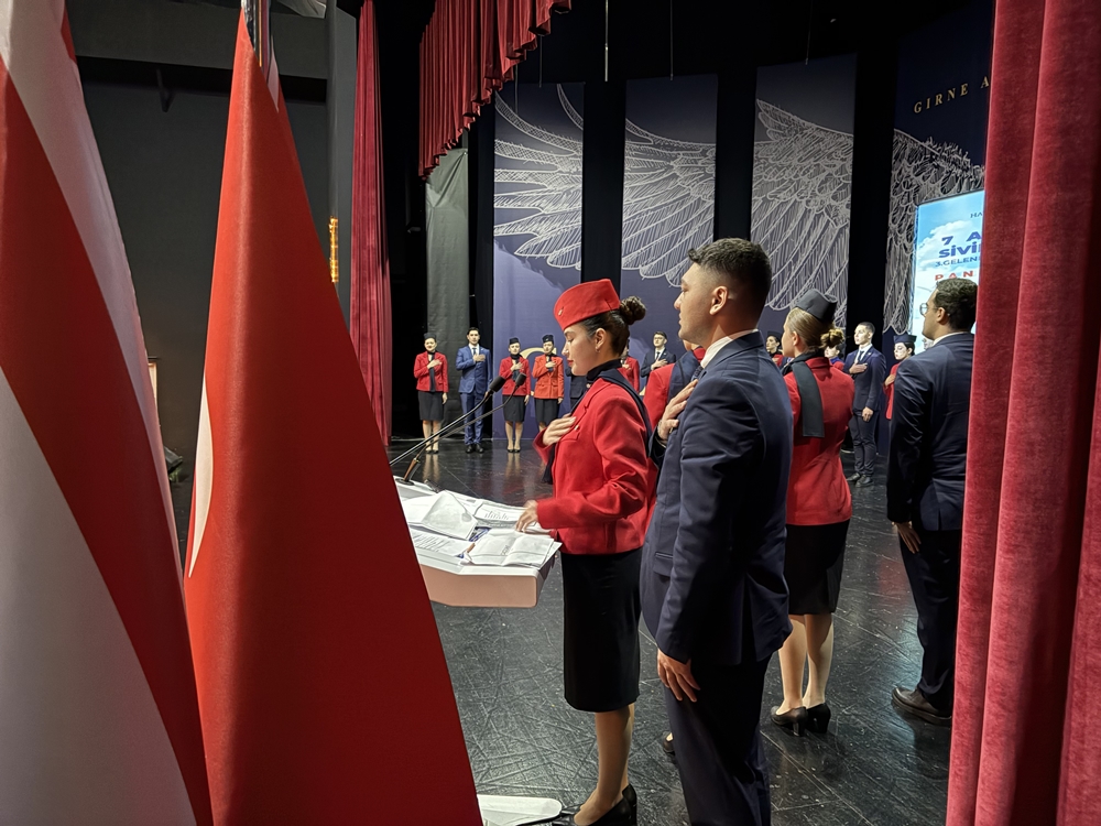 Geçtiğimiz cuma günü GAÜ Spectrum Kongre Merkezi’nde düzenlenen etkinlikte, üçüncüsü gerçekleştirilen ‘İlk Kıbrıslı Türk Havacılar’ paneli ile yüksek okul bünyesinde yer alan ‘Sivil Havacılık Kabin Hizmetleri Bölümü’ ve ‘Havacılık Yönetimi Bölümü’ öğrencilerinin mesleki and içme töreni de yer aldı. Kutlamaya; GAÜ Rektörü Prof. Dr. Serdar Yurtsever başta olmak üzere GAÜ Üst Yönetimi Üyeleri, Akademik- İdari Kadro mensupları ile öğrenciler katılırken, güne özel konuşmalarıyla KKTC Sivil Havacılık Dairesi Müdürü Mustafa Sofi ve Pegasus Havayolları KKTC Temsilcisi Zeki Ziya ile havacılık camiasına ilişkin diğer davetliler de törende hazır bulundu.