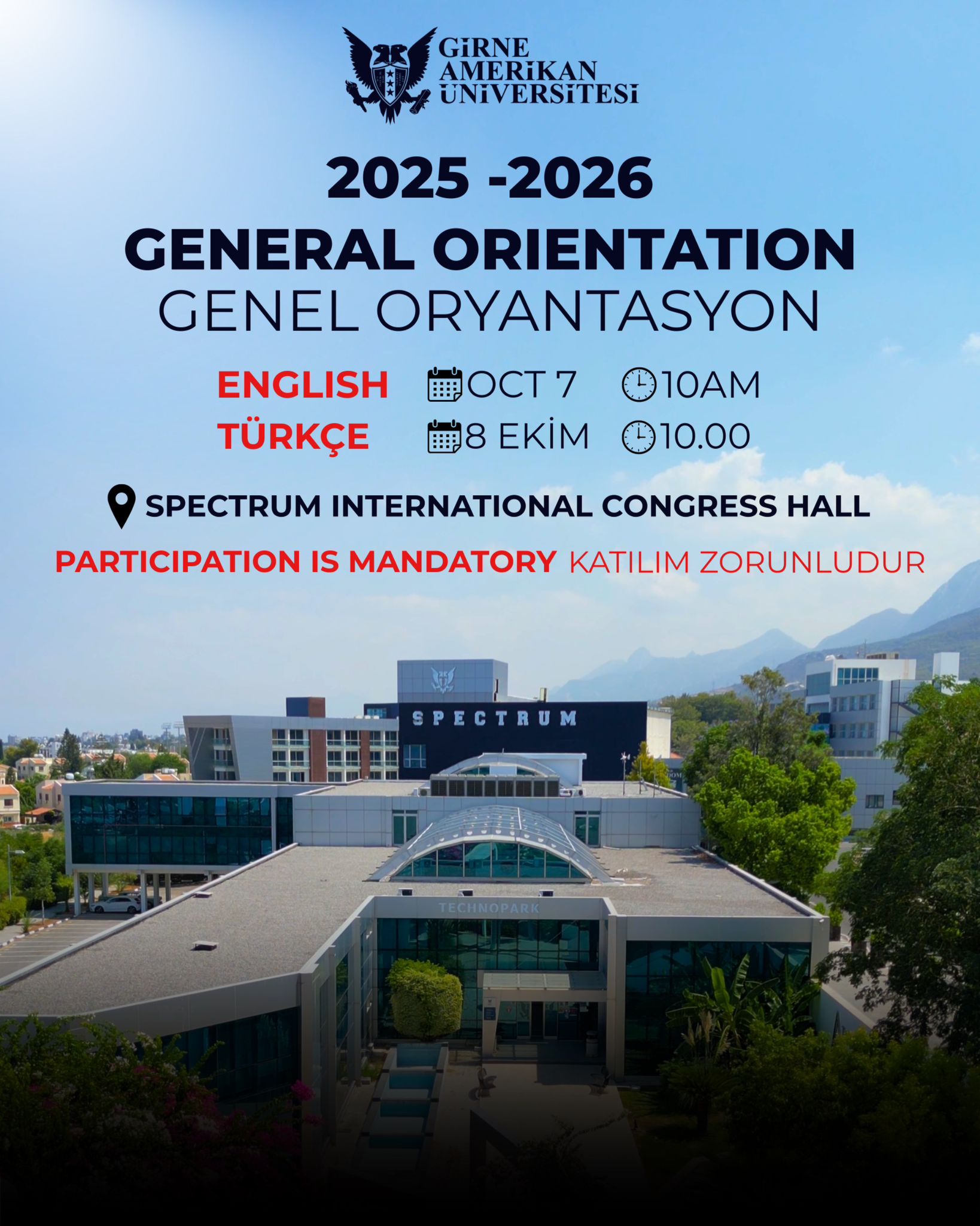 8 Ekim Çarşamba günü Spectrumda saat 10:00'da tüm 1. sınıf öğrencilerin oryantasyon toplantısı vardır. Katılım zorunludur. Yoklama alınacaktır.