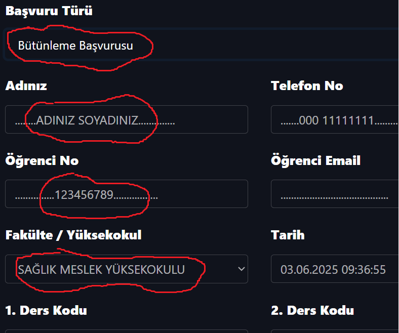 2-Açılan sayfadan forma ulaşın Başvuru türünü “Bütünleme Sınavını” seçin,