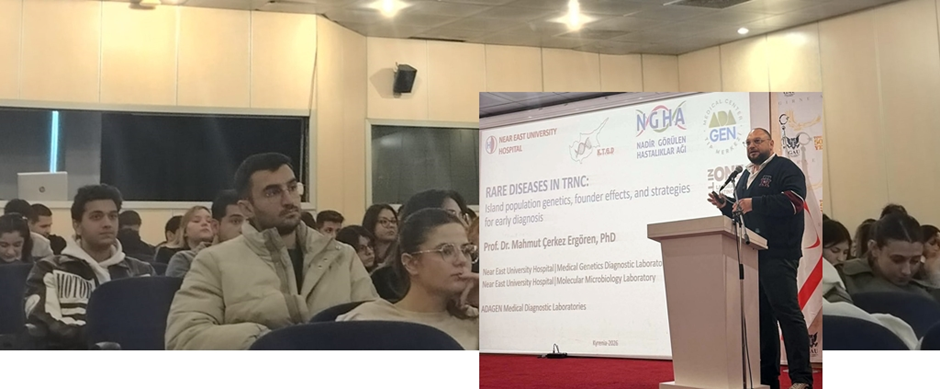 EURORDIS öncülüğünde ve sembolik olarak 29 Şubat tarihinde anılan Nadir Hastalıklar Günü etkinlikleri kapsamında, Girne American University’nde nadir hastalıklara dikkat çekmek amacıyla bir konferans düzenlendi. “Kuzey Kıbrıs Türk Cumhuriyeti’nde Nadir Hastalıklar: Ada Genetiği, Kurucu Etkisi ve Erken Tanı Stratejileri” başlıklı konferans, Prof. Dr. Mahmut Çerkez Ergören tarafından verilmiş olup, üniversitenin Eğitim-Öğretim ve Araştırmada Mükemmeliyet Merkezi ev sahipliğinde ve sağlık alanındaki çeşitli fakültelerin katkılarıyla gerçekleştirilmiştir. Prof. Dr. Ergören konuşmasında, teşhis edilen nadir hastalık ve hasta sayısındaki artışa dikkat çekmiş, özellikle akraba evliliklerinin sosyal yapı ile bağlantılı önemli bir risk faktörü olduğunu vurgulamış ve ülkemizde yürütülen bilimsel çalışmalar ile Evrensel Hasta Hakları Derneği’nin Hasta Hakları İzleme Projesi hibe programı kapsamında sürdürülen projeler hakkında bilgi paylaşmıştır. Konferans, erken tanı, toplumsal farkındalık ve sağlık hizmetlerine eşit erişimin desteklenmesi yoluyla United Nations Sürdürülebilir Kalkınma Amaçları’ndan özellikle Amaç 3 (Sağlıklı ve Kaliteli Yaşam) ve bilimsel bilginin yaygınlaştırılması bakımından Amaç 4 (Nitelikli Eğitim) ile doğrudan ilişkilidir.